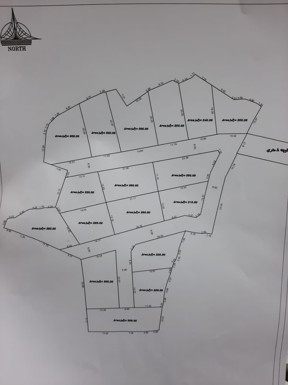 در قطعات تفکیکی از ۱۹۰متر تا ۵۰۰متر طبق نقشه پیوست
