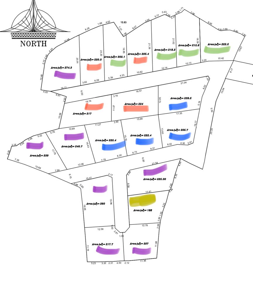 در قطعات تفکیکی از ۱۹۰متر تا ۵۰۰متر طبق نقشه پیوست