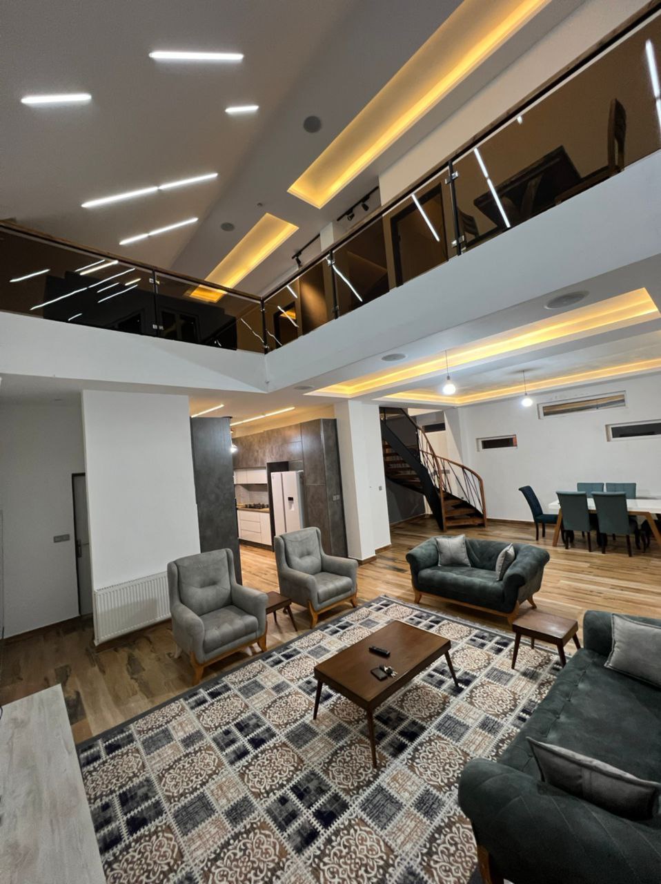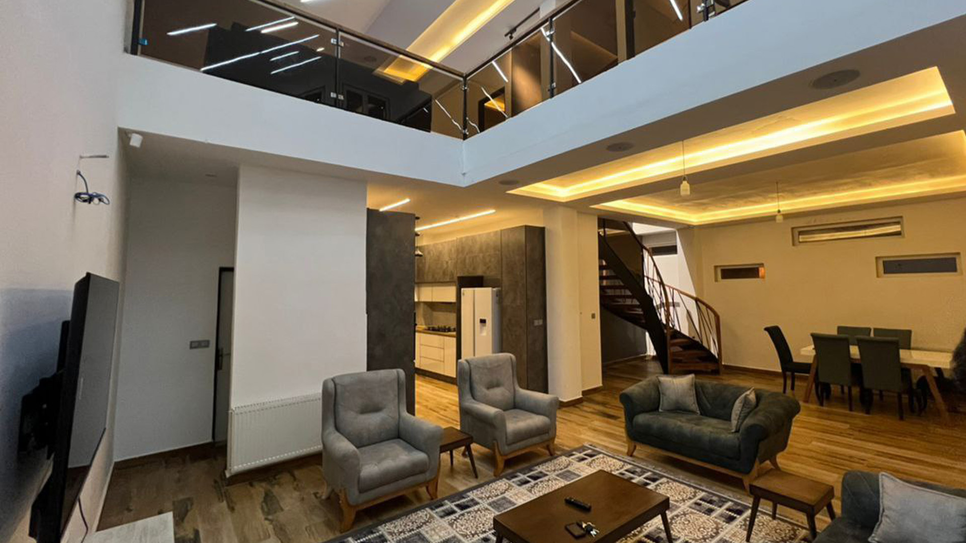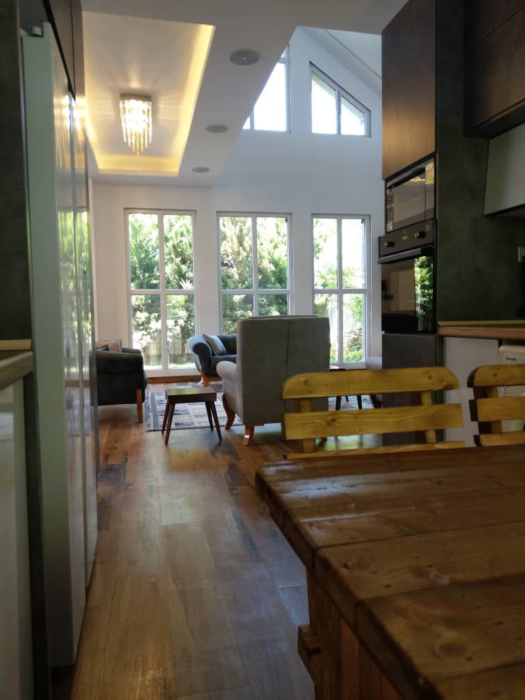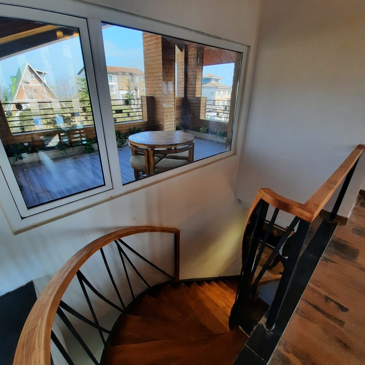 دارای پنجرههای دوجداره لمینت شده و باربیکیو و کاغذ دیواری شده