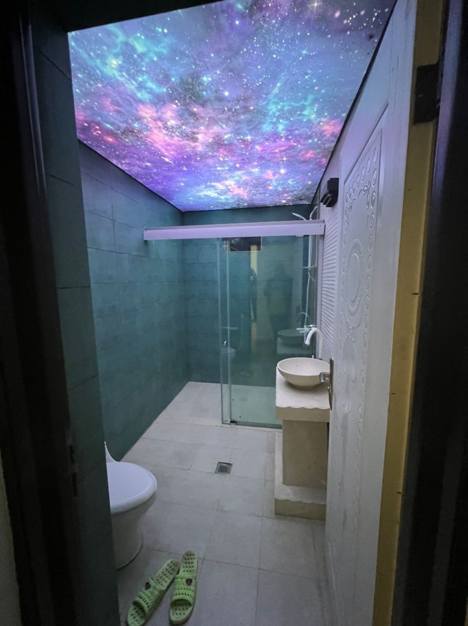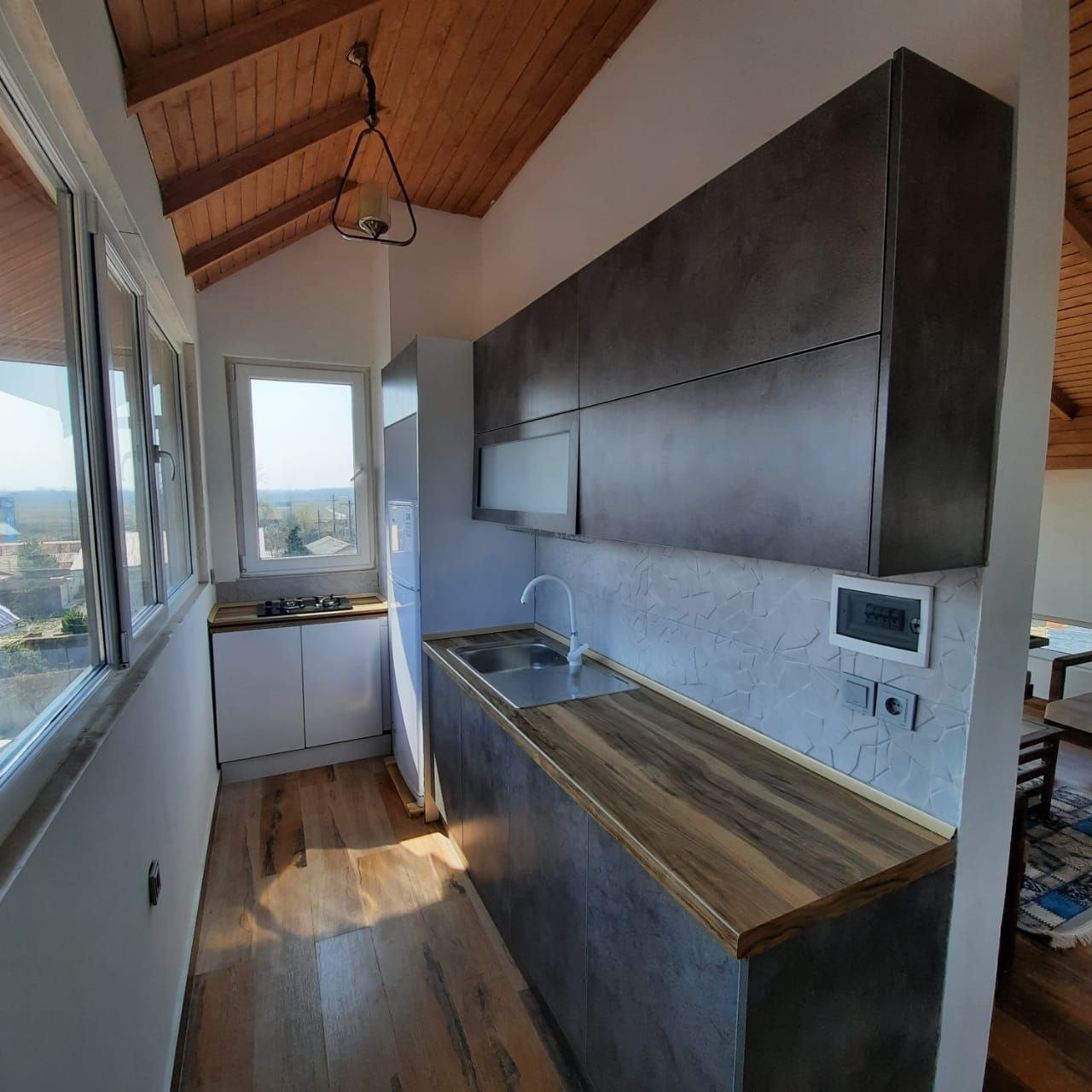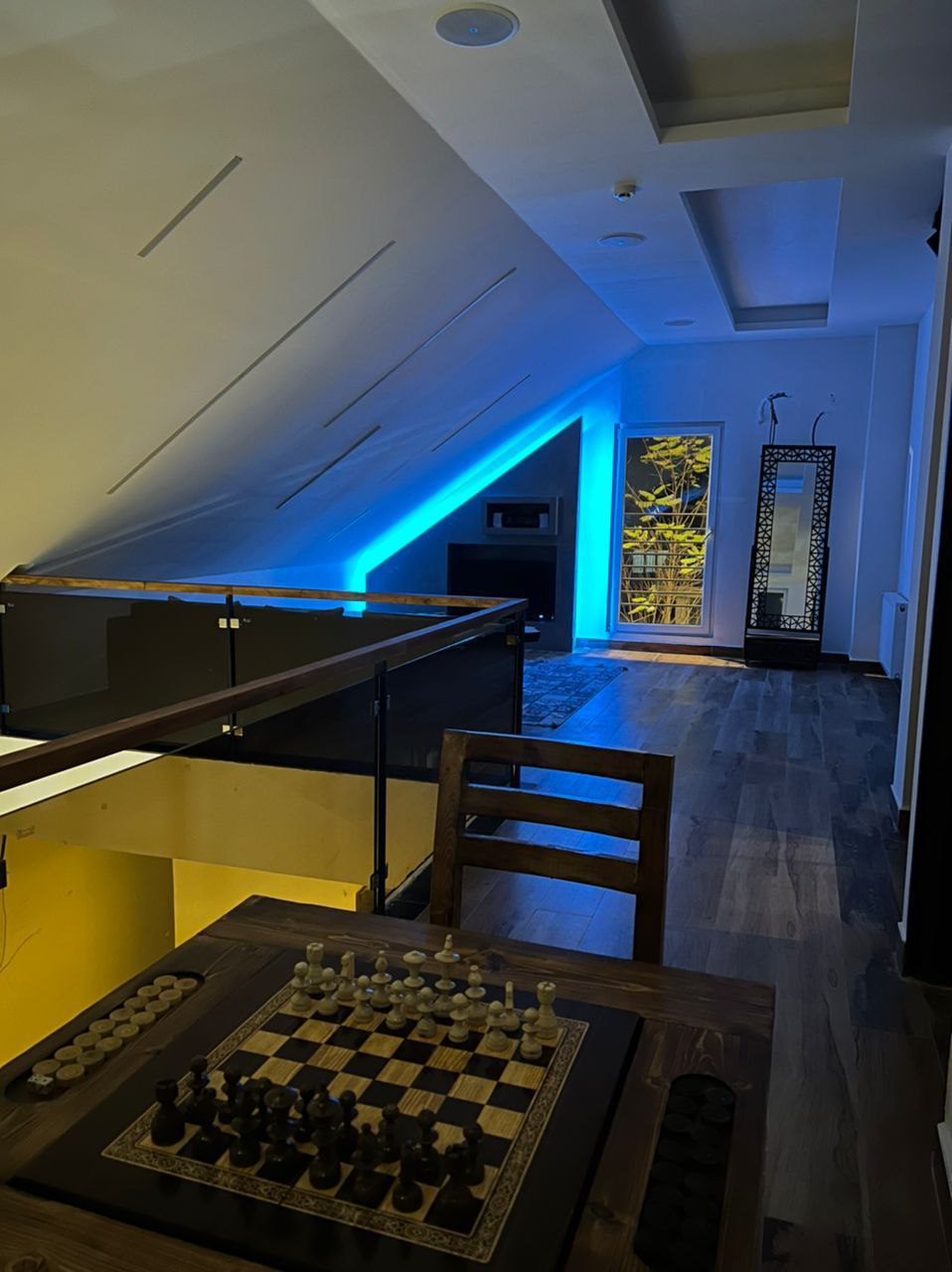 دارای پنجرههای دوجداره لمینت شده و باربیکیو و کاغذ دیواری شده